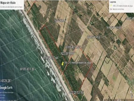Excelente terreno a pie de playa con una superficie total de 68.88 hectáreas, ubicado en las hermosas playas de Nayarit, después de Novillero y con una inigualable puesta de los mejores atardeceres en la zona.